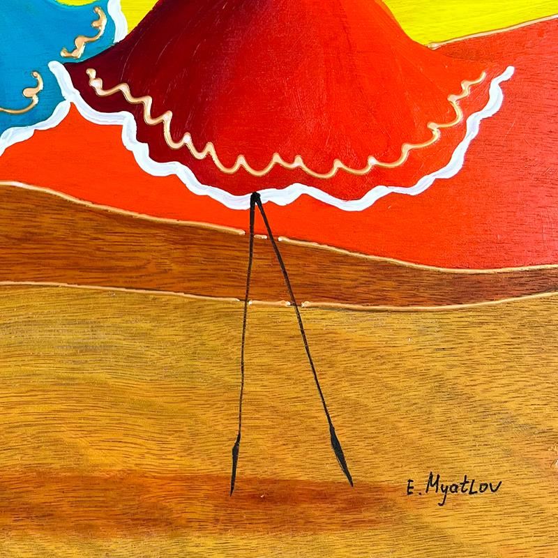 This is an original painting oil on wood panel by Ester Myatlov. Hand signed by the artist, this piece comes with a letter of authenticity. Measures approximately 12" x 12" (image).