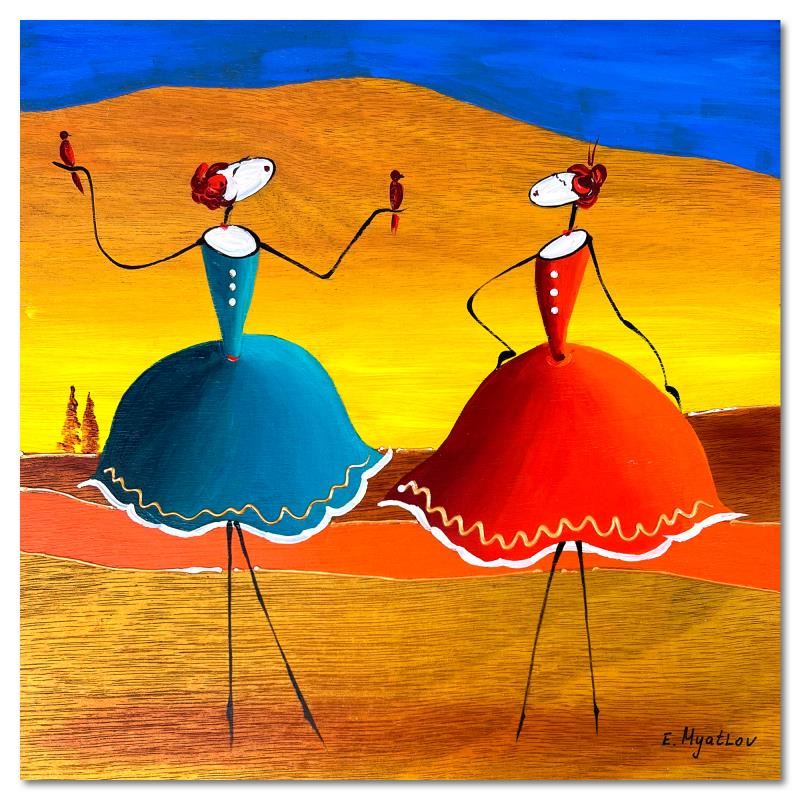 This is an original painting oil on wood panel by Ester Myatlov. Hand signed by the artist, this piece comes with a letter of authenticity. Measures approximately 10" x 10" (image).