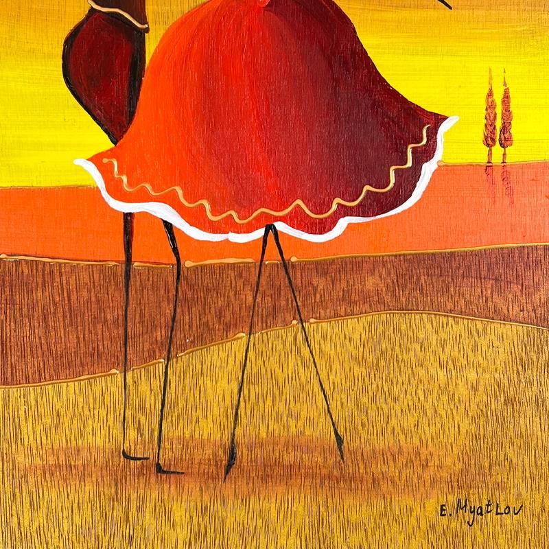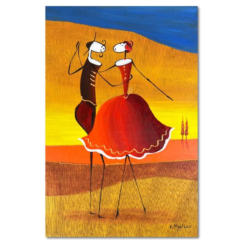 This is an original painting oil on wood panel by Ester Myatlov. Hand signed by the artist, this piece comes with a letter of authenticity. Measures approximately 12" x 8" (image).