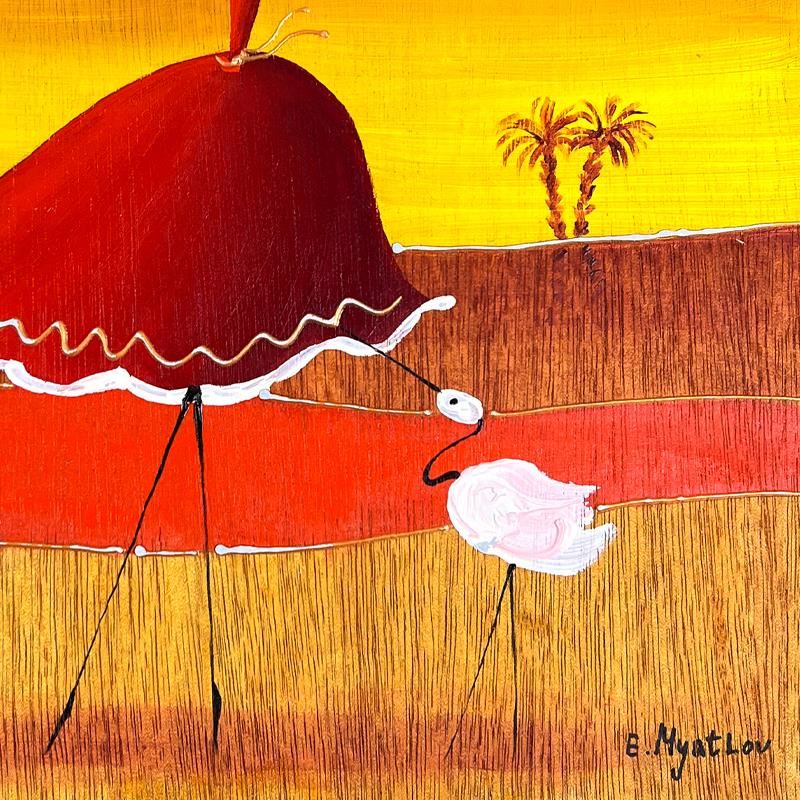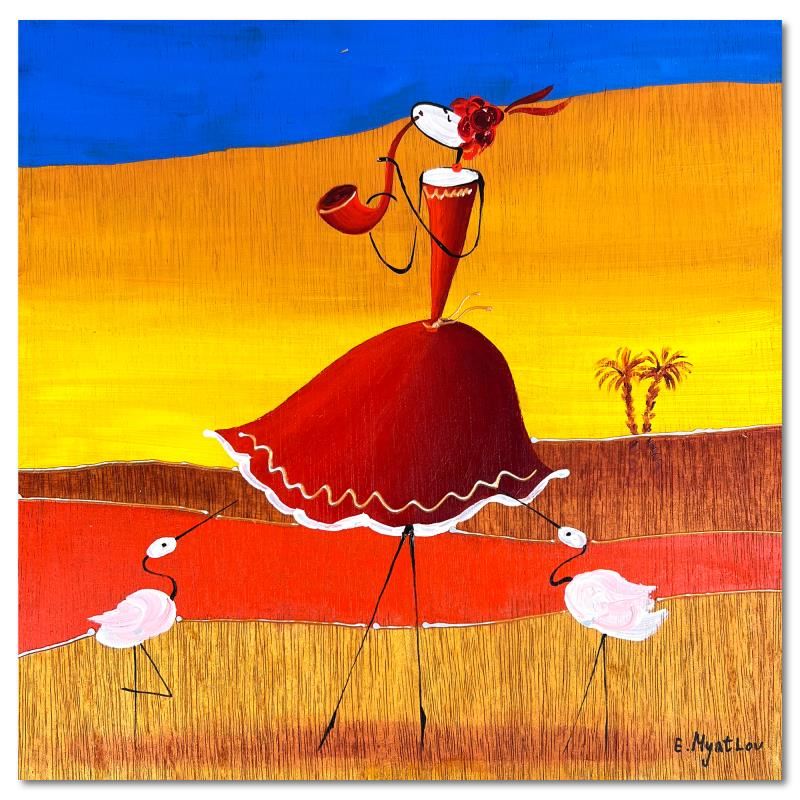 This is an original painting oil on wood panel by Ester Myatlov. Hand signed by the artist, this piece comes with a letter of authenticity. Measures approximately 10" x 10" (image).