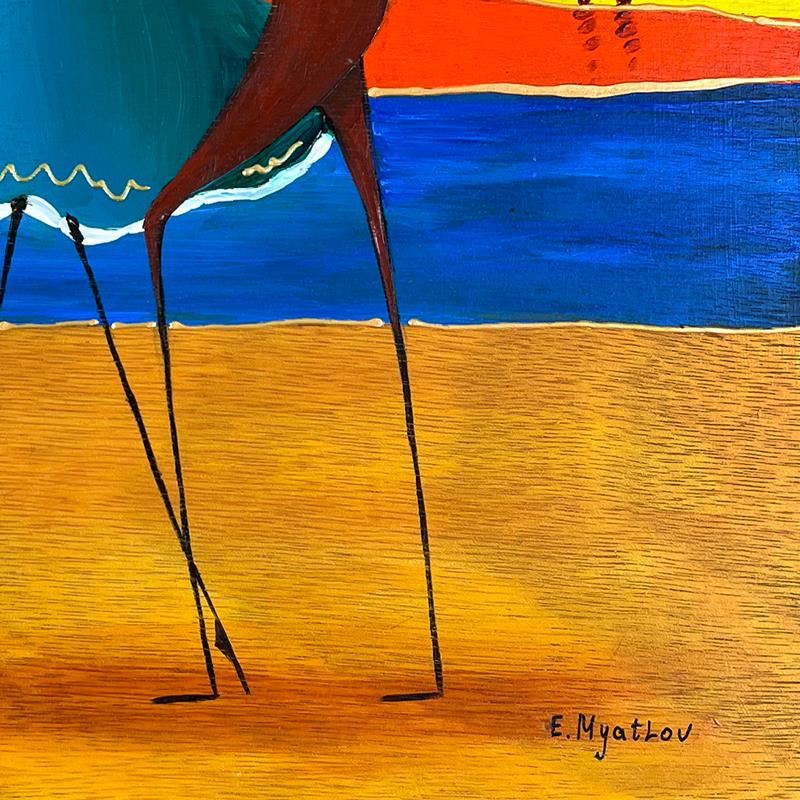 This is an original painting oil on wood panel by Ester Myatlov. Hand signed by the artist, this piece comes with a letter of authenticity. Measures approximately 12" x 12" (image).