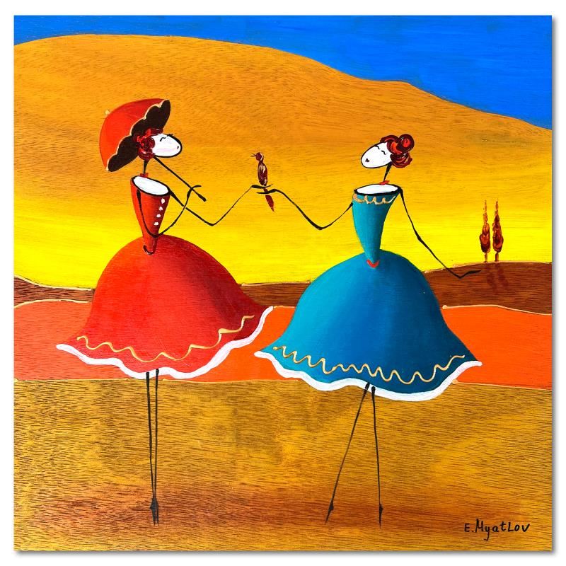 This is an original painting oil on wood panel by Ester Myatlov. Hand signed by the artist, this piece comes with a letter of authenticity. Measures approximately 10" x 10" (image).