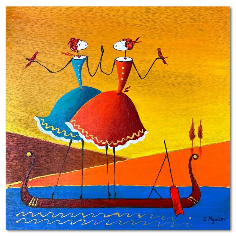 This is an original painting oil on wood panel by Ester Myatlov. Hand signed by the artist, this piece comes with a letter of authenticity. Measures approximately 10" x 10" (image).