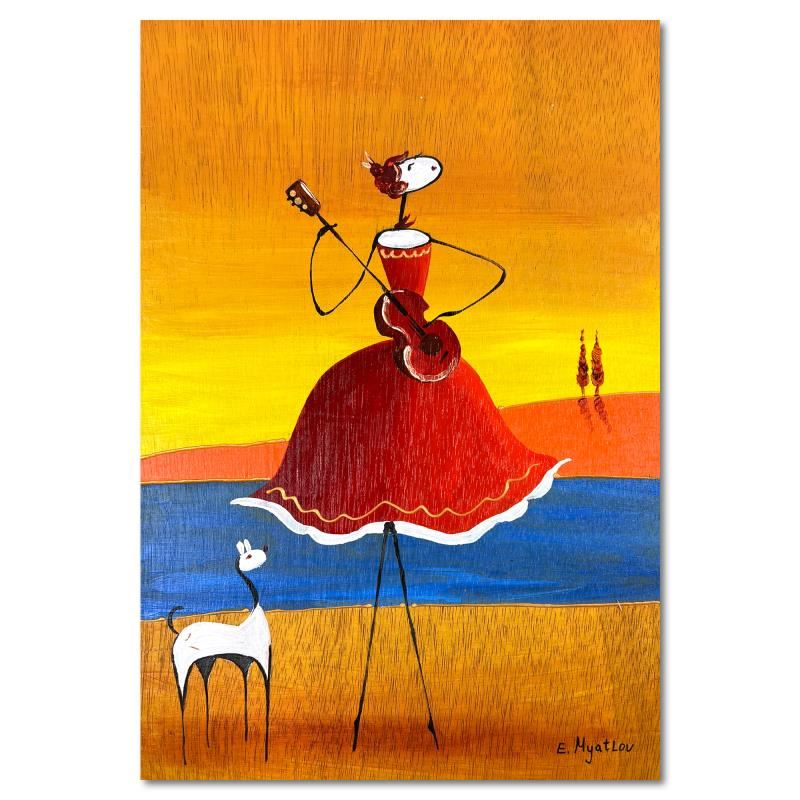 This is an original painting oil on wood panel by Ester Myatlov. Hand signed by the artist, this piece comes with a letter of authenticity. Measures approximately 12" x 8" (image).
