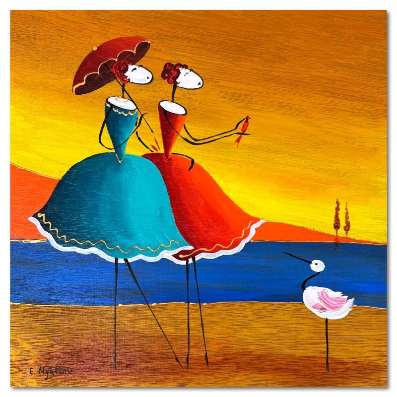 This is an original painting oil on wood panel by Ester Myatlov. Hand signed by the artist, this piece comes with a letter of authenticity. Measures approximately 10" x 10" (image).