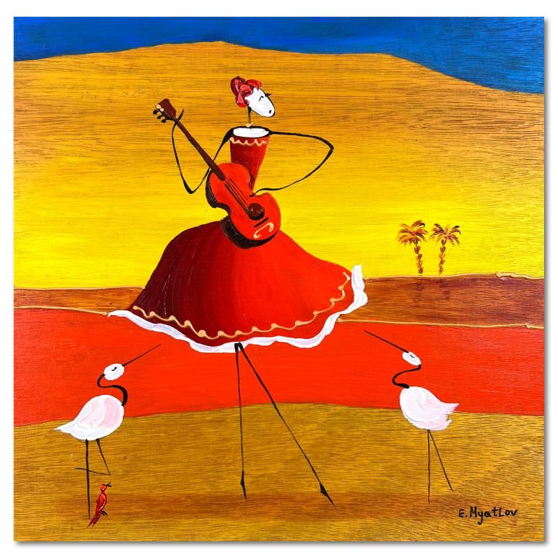 This is an original painting oil on wood panel by Ester Myatlov. Hand signed by the artist, this piece comes with a letter of authenticity. Measures approximately 10" x 10" (image).