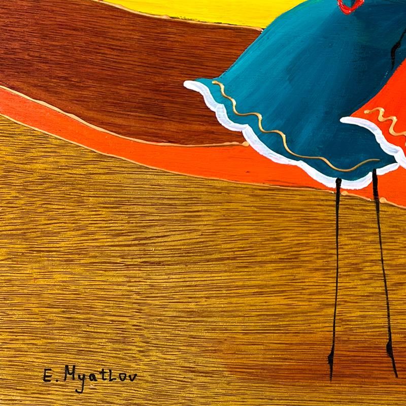 This is an original painting oil on wood panel by Ester Myatlov. Hand signed by the artist, this piece comes with a letter of authenticity. Measures approximately 10" x 10" (image).