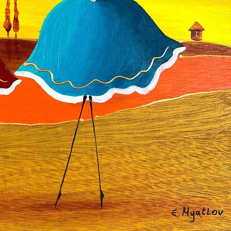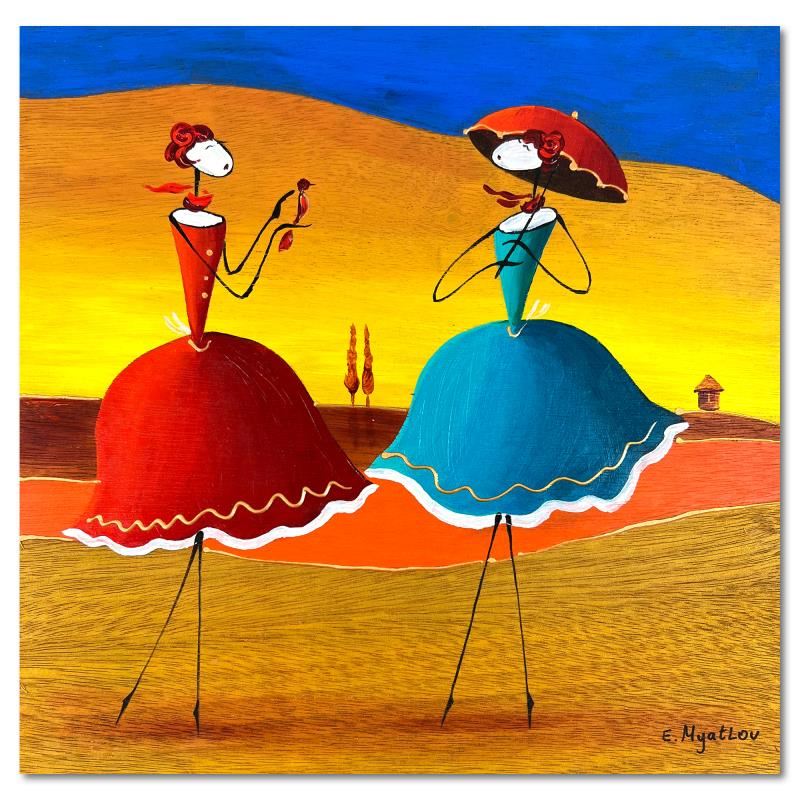 This is an original painting oil on wood panel by Ester Myatlov. Hand signed by the artist, this piece comes with a letter of authenticity. Measures approximately 10" x 10" (image).