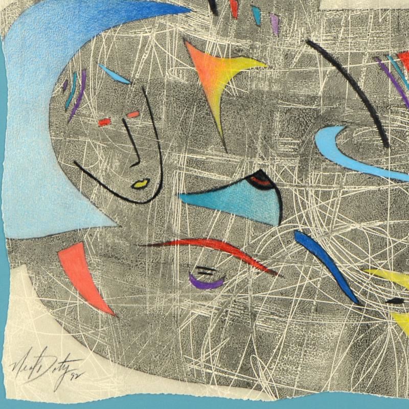 This is an original mixed media linocut on paper by Neal Doty (1941-2016), hand signed by the artist. This piece is dated 1992 and comes custom framed. Includes Certificate of Authenticity. This piece comes from Neal Doty's personal collection and was rec