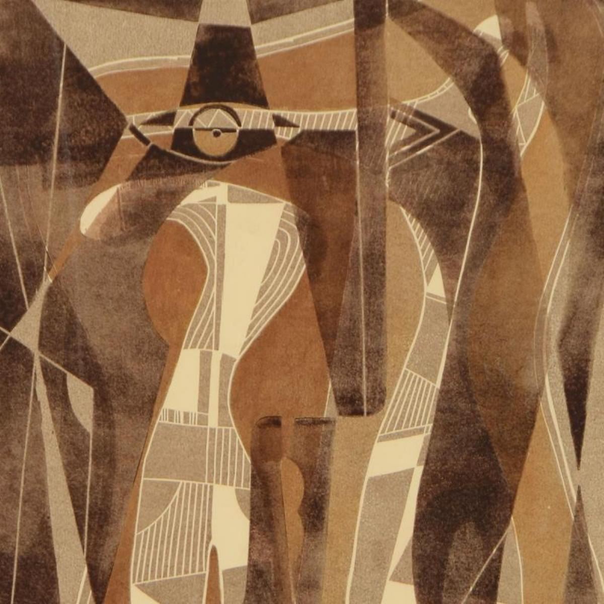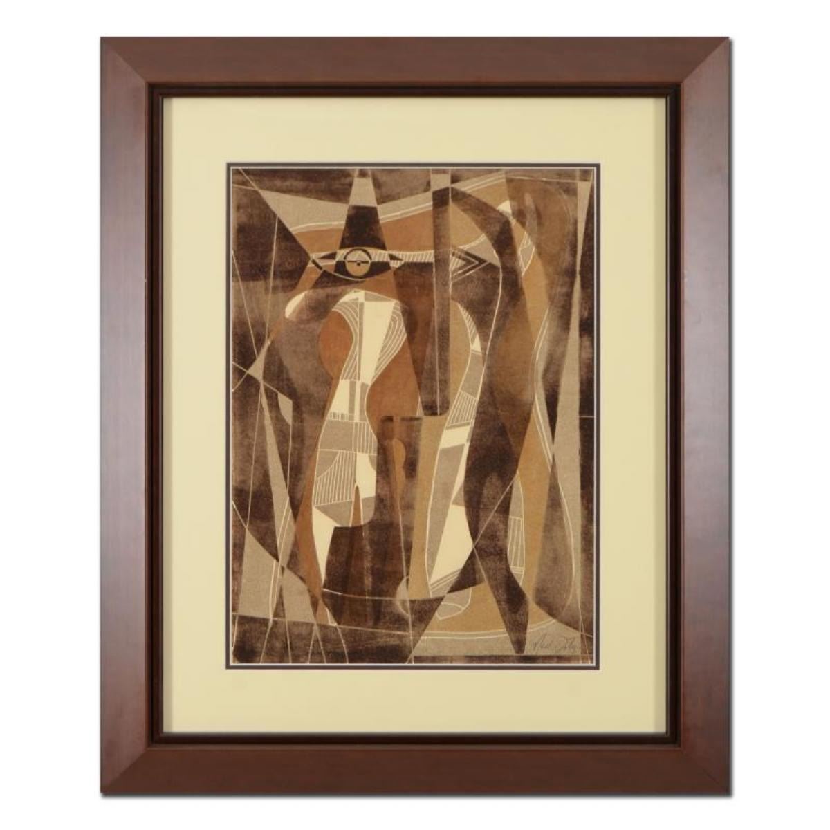This is an original mixed media linocut on paper by Neal Doty (1941-2016), hand signed by the artist. This piece comes custom framed. Includes Certificate of Authenticity. This piece comes from Neal Doty's personal collection and was received directly from Doty's Estate. Measures approx. 27" x 33.5" (frame), 15" x 22" (image).