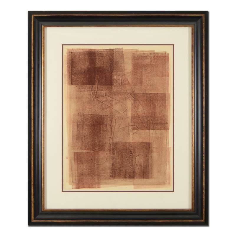 This is an original mixed media linocut on paper by Neal Doty (1941-2016), hand signed by the artist. This piece comes custom framed. Includes Certificate of Authenticity. This piece comes from Neal Doty's personal collection and was received directly from Doty's Estate. Measures approx. 29" x 35" (frame), 15" x 22" (image).