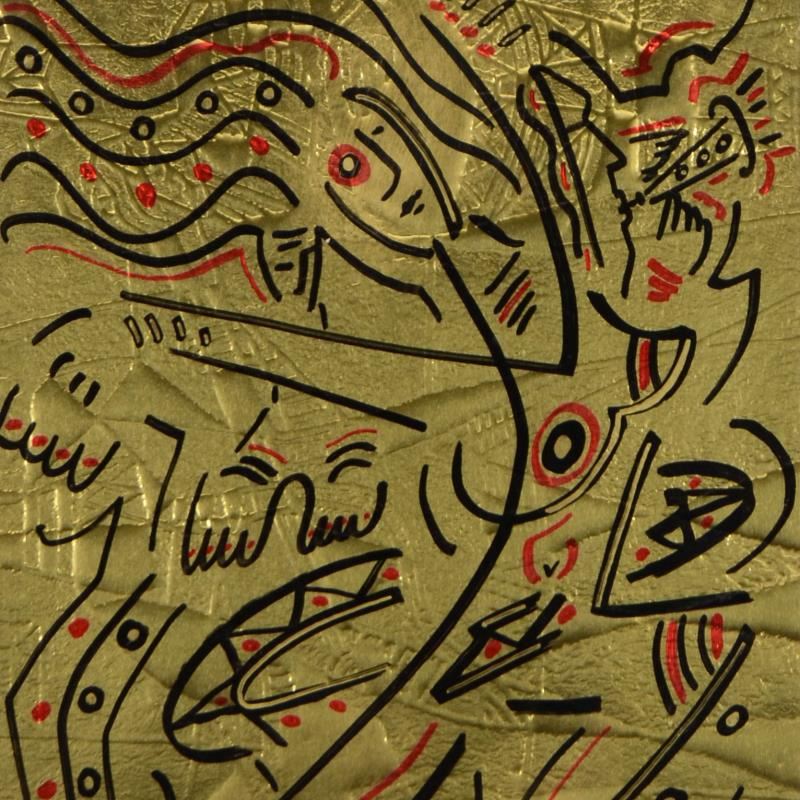 This is a one-of-a-kind mixed media on foil by Neal Doty (1941-2016), hand signed by the artist. This piece comes custom framed. Includes Certificate of Authenticity. This piece comes from Neal Doty's personal collection and was received directly from Doty's Estate. Measures approx. 20" x 24" (frame), 10" x 15" (image).