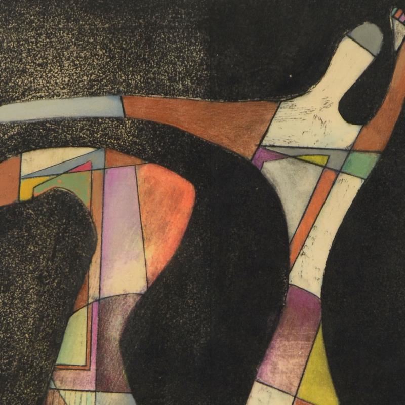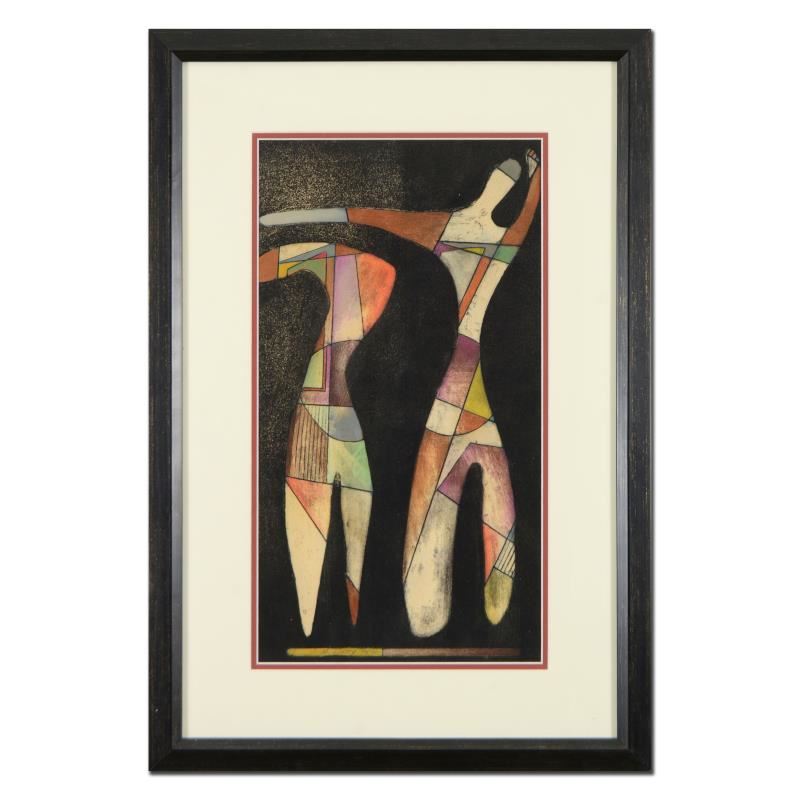 This is an original mixed media linocut on paper by Neal Doty (1941-2016), hand signed by the artist. This piece is dated 1975 and comes custom framed. Includes Certificate of Authenticity. This piece comes from Neal Doty's personal collection and was received directly from Doty's Estate. Measures approx. 18.5" x 27.5" (frame), 10" x 20" (image).