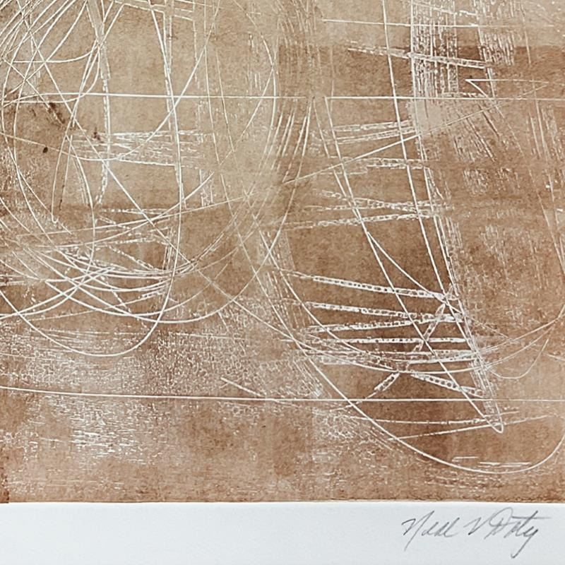 This is a one-of-a-kind linocut on paper by Neal Doty (1941-2016), hand signed by the artist. Includes Letter of Authenticity. Measures approx. 20" x 26" (border), 16" x 22" (image). There are imperfections in the border area that may be concealed when th