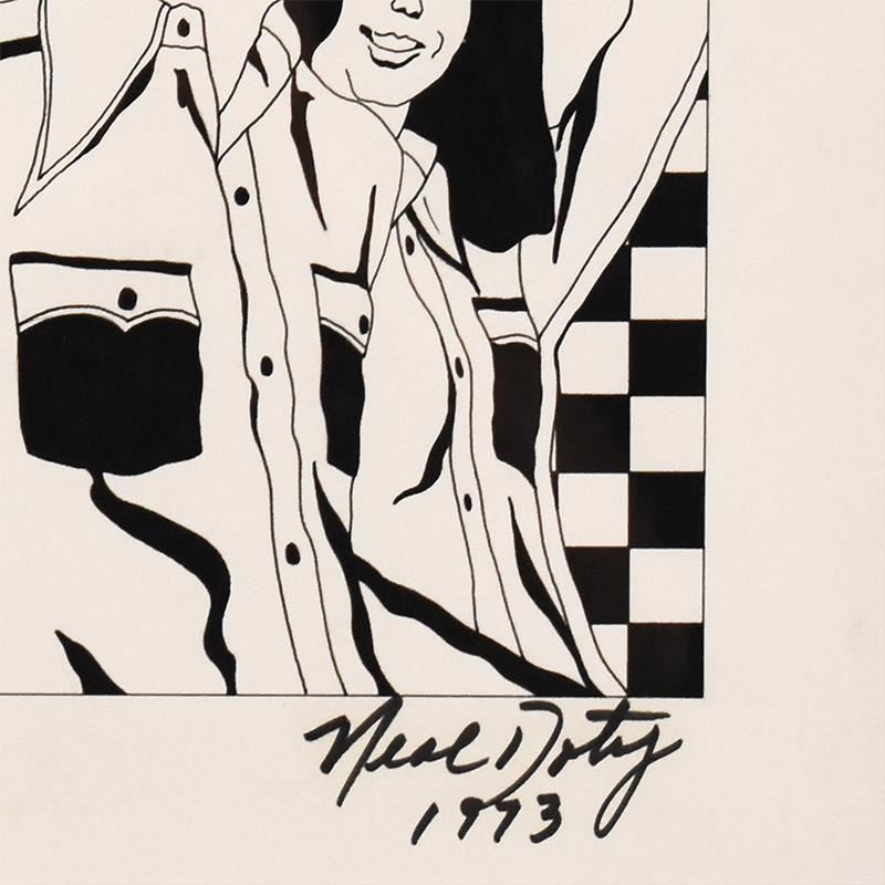 This is an original pen and ink drawing on paper by Neal Doty (1941-2016), dated 1973 and hand signed by the artist. This piece comes custom framed. Includes Letter of Authenticity. Measures approx. 19" x 16" (frame), 11" x 8" (image).