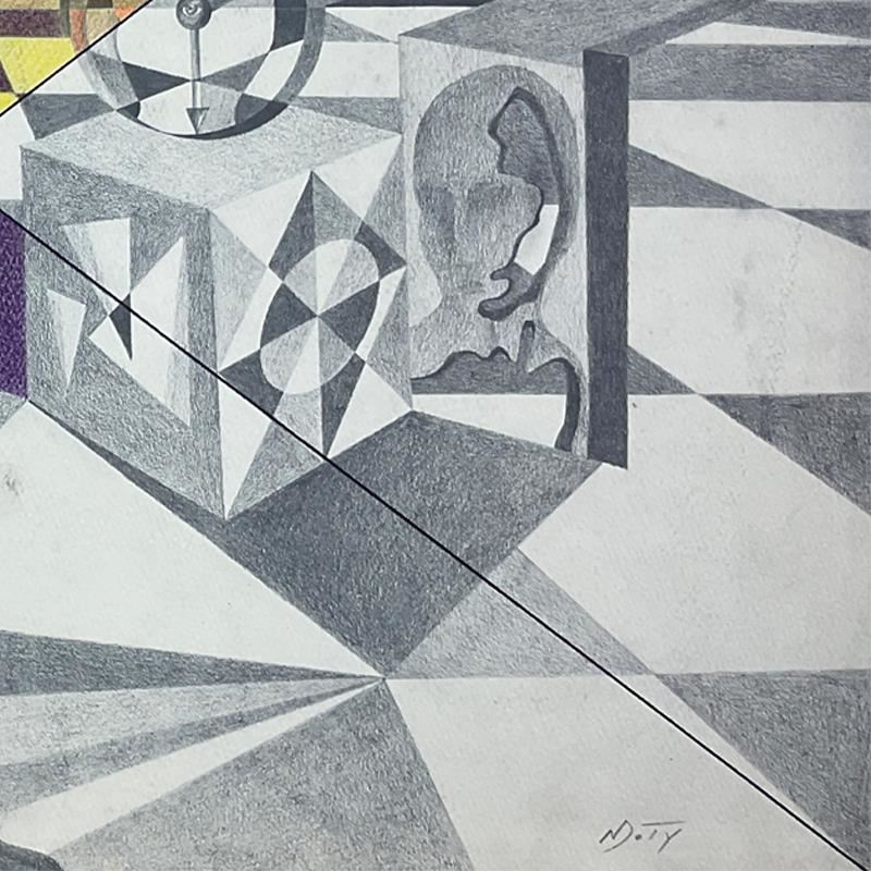 This is an original mixed media on paper by Neal Doty (1941-2016), hand signed by the artist. Includes Letter of Authenticity. Measures approx. 23" x 17.5" (border), 21" x 16" (image). There are some imperfections in the border area that may be cropped when the piece is framed.
