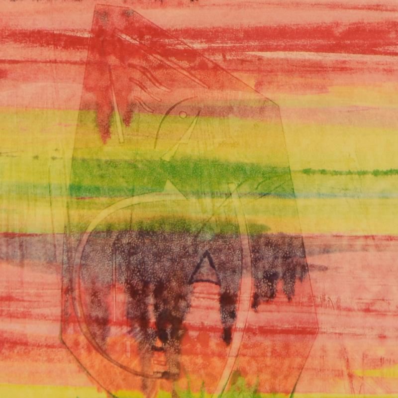 This is an original mixed media linocut on paper by Neal Doty (1941-2016), hand signed by the artist. This piece comes custom framed. Includes Certificate of Authenticity. This piece comes from Neal Doty's personal collection and was received directly from Doty's Estate. Measures approx. 22" x 25" (frame), 10" x 13" (image).