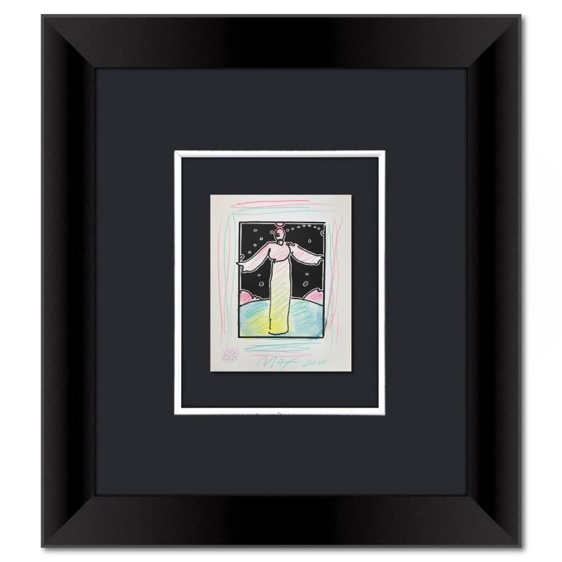 This is a one-of-a-kind mixed media on paper, hand signed by Peter Max. The piece comes custom framed with a backside cutout to display Peter Max Studio registration number 370854 certifying authenticity. Measures approximately 23" x 21" (frame), 9" x 7" (image).