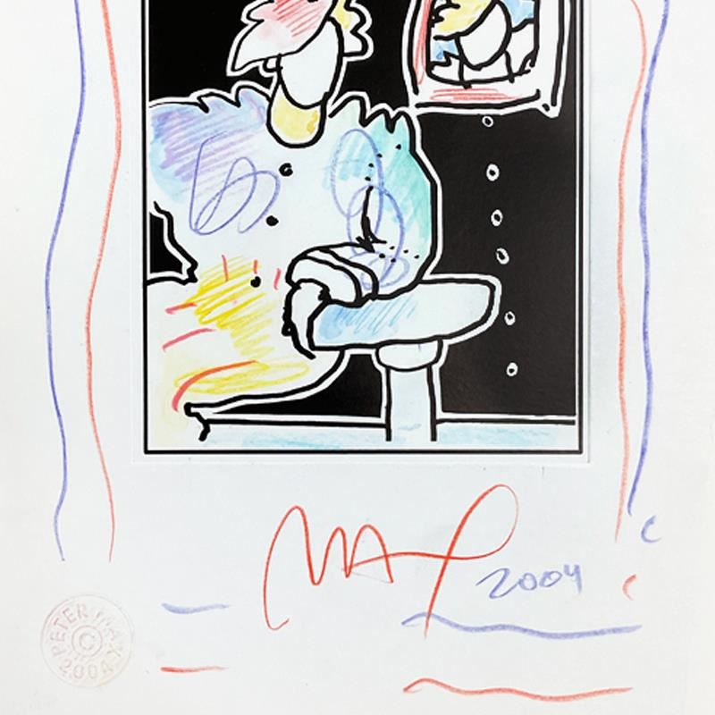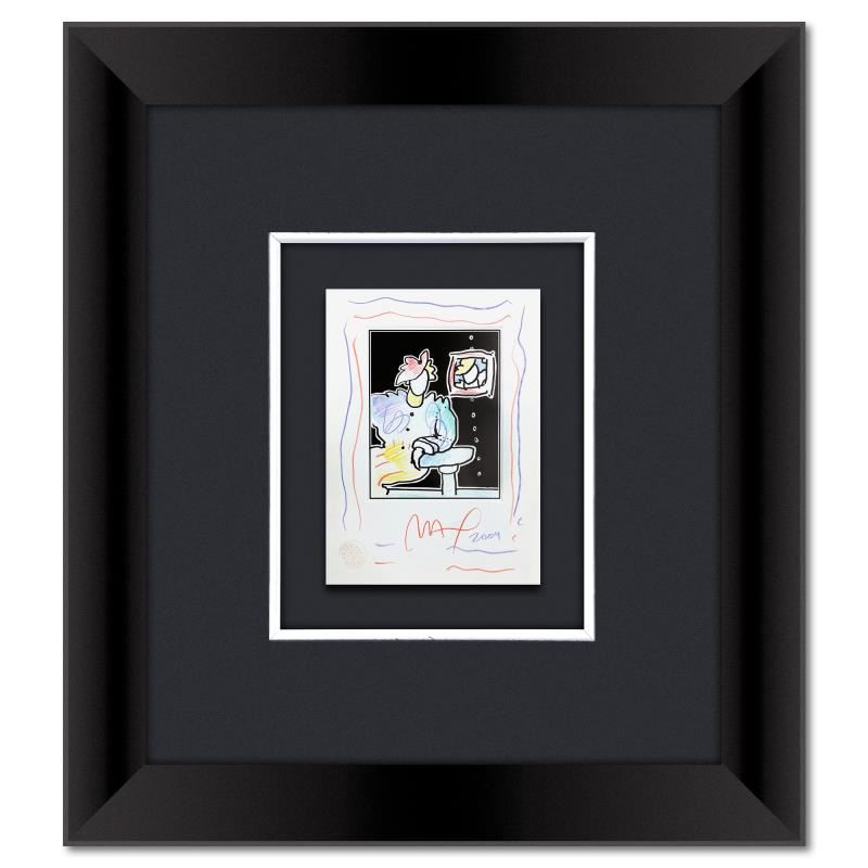 This is a one-of-a-kind mixed media on paper, hand signed by Peter Max. The piece comes custom framed with a backside cutout to display Peter Max Studio registration number 339459 certifying authenticity. Measures approx. 22.5" x 21.5" (frame), 8" x 6" (image).