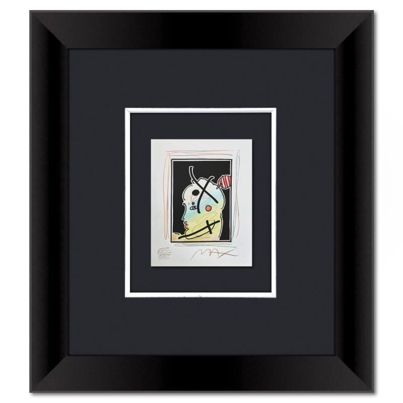 This is a one-of-a-kind mixed media on paper, hand signed by Peter Max. The piece comes custom framed with a backside cutout to display Peter Max Studio registration number 370604 certifying authenticity. Measures approximately 23" x 21" (frame), 9" x 7" (image). This item requires special handling and may have a longer than usual turnaround.