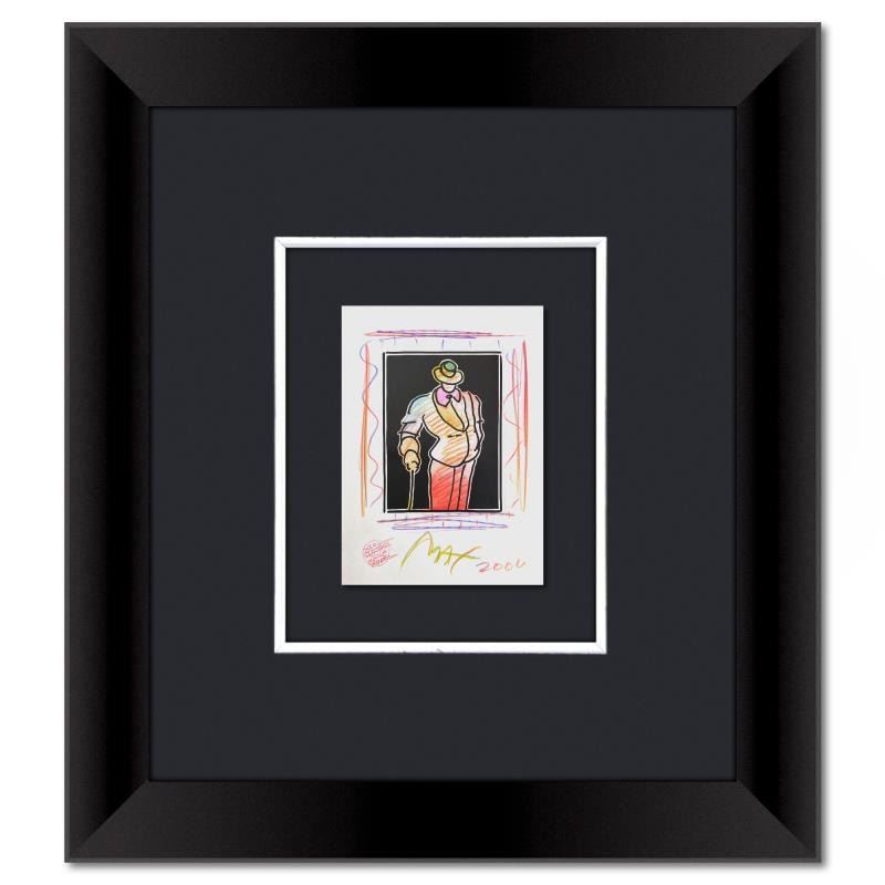 This is a one-of-a-kind mixed media on paper, hand signed by Peter Max. The piece comes custom framed with a backside cutout to display Peter Max Studio registration number 389238 certifying authenticity. Measures approximately 22.5" x 20" (frame), 8.5" x 6" (image). This item requires special handling and may have a longer than usual turnaround.