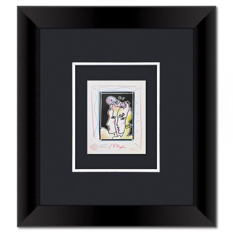 This is a one-of-a-kind mixed media on paper, hand signed by Peter Max. The piece comes custom framed with a backside cutout to display Peter Max Studio registration number 338296 certifying authenticity. Measures approximately 23" x 21" (frame), 9" x 7" (image). This item requires special handling and may have a longer than usual turnaround.