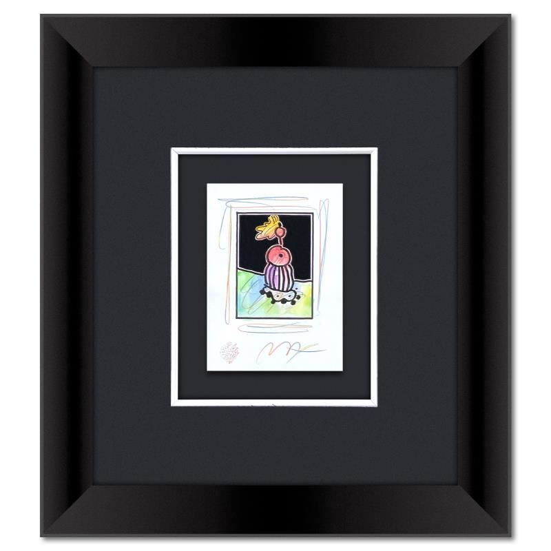 This is a one-of-a-kind mixed media on paper, hand signed by Peter Max. The piece comes custom framed with a backside cutout to display Peter Max Studio registration number 371740 certifying authenticity. Measures approx. 22.5" x 21.5" (frame), 8" x 6" (image). This item requires special handling and may have a longer than usual turnaround.