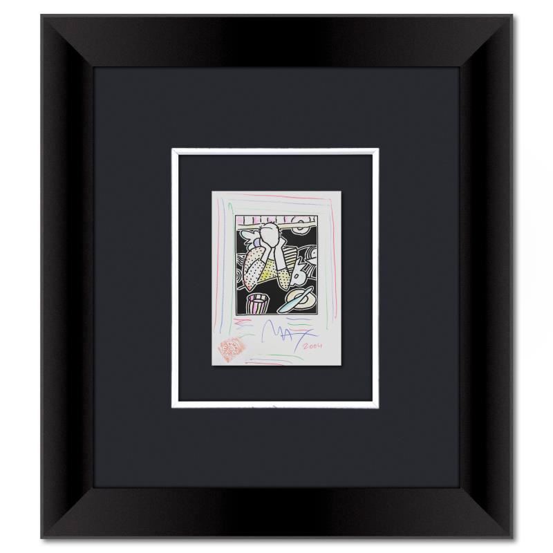 This is a one-of-a-kind mixed media on paper, hand signed by Peter Max. The piece comes custom framed with a backside cutout to display Peter Max Studio registration number 339005 certifying authenticity. Measures approximately 22.5" x 20" (frame), 8.5" x 6" (image). This item requires special handling and may have a longer than usual turnaround.