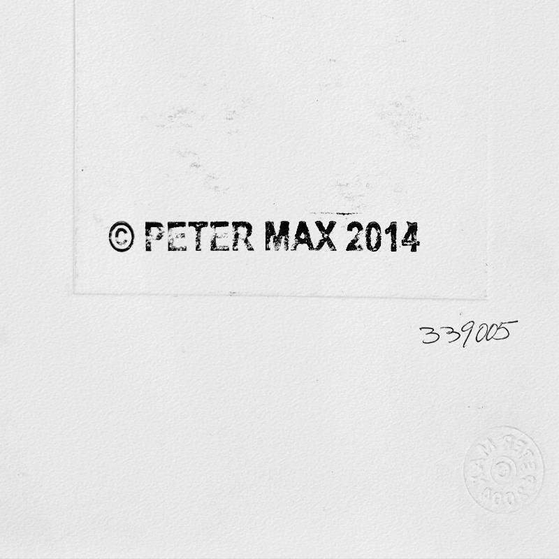 This is a one-of-a-kind mixed media on paper, hand signed by Peter Max. The piece comes custom framed with a backside cutout to display Peter Max Studio registration number 339005 certifying authenticity. Measures approximately 22.5" x 20" (frame), 8.5" x 6" (image). This item requires special handling and may have a longer than usual turnaround.