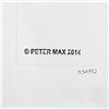 This is a one-of-a-kind mixed media on paper, hand signed by Peter Max. The piece comes custom framed with a backside cutout to display Peter Max Studio registration number 338992 certifying authenticity. Measures approximately 22.5" x 20" (frame), 8.5" x 6" (image). This item requires special handling and may have a longer than usual turnaround.