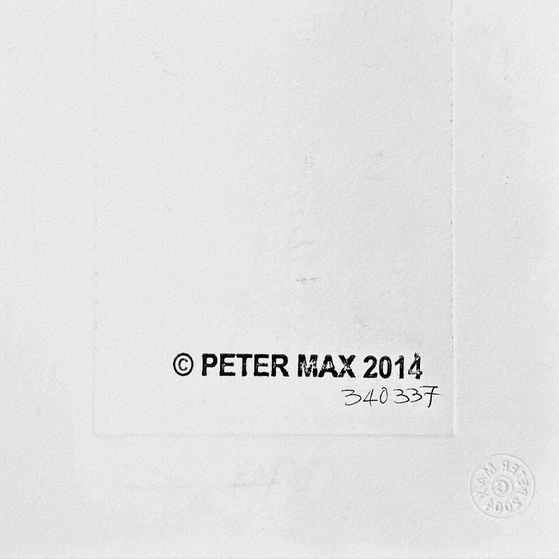 This is a one-of-a-kind mixed media on paper, hand signed by Peter Max. The piece comes custom framed with a backside cutout to display Peter Max Studio registration number 340337 certifying authenticity. Measures approximately 23" x 21" (frame), 9" x 7" (image). This item requires special handling and may have a longer than usual turnaround.