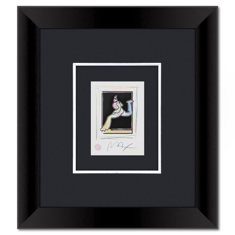 This is a one-of-a-kind mixed media on paper, hand signed by Peter Max. The piece comes custom framed with a backside cutout to display Peter Max Studio registration number 372295 certifying authenticity. Measures approximately 22.5" x 20" (frame), 8.5" x 6" (image). This item requires special handling and may have a longer than usual turnaround.
