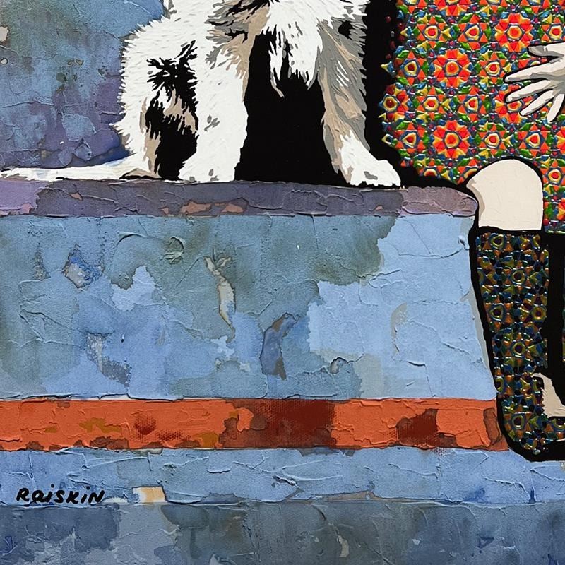 This is an untitled limited edition on canvas by Marina Raiskin. The piece is hand signed by the artist and accompanied by a letter of authenticity. Measures approximately 22" x 18.5".