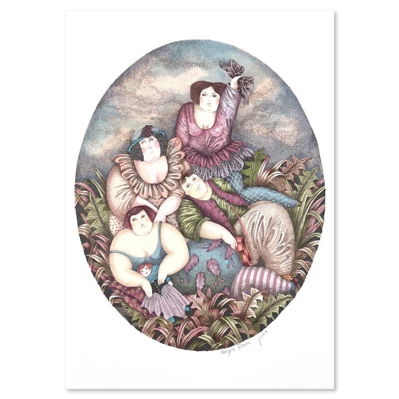 This is a limited edition on paper by Haya Ran. The piece comes hand signed by the artist, numbered, and with a letter of authenticity. Measures approximately 15" x 12".
