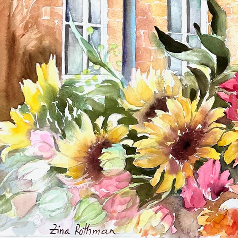 This is an untitled original painting on paper by Zina Roitman. The piece is hand signed and comes with a letter of authenticity. Measures approximately 29.5" x 23.5".