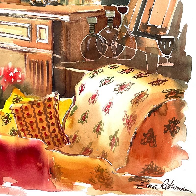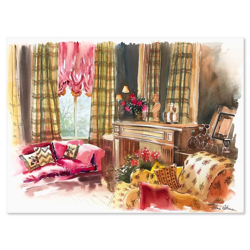 This is an original watercolor painting on paper by Zina Roitman, hand signed by the artist. Includes Letter of Authenticity. Measures approx. 41.5" x 31" (border), 39" x 29" (image).