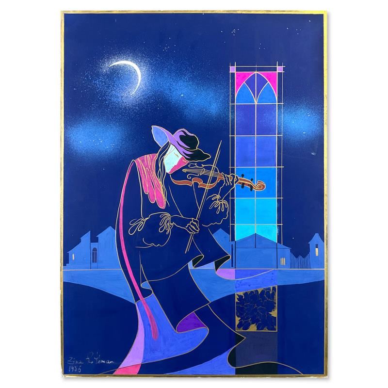 This is an original mixed media painting on paper board by Zina Roitman, hand signed by the artist. Includes Letter of Authenticity. Measures approx. 20" x 27.5" (image). ** Please note: There are faint scuffs on the image that are only noticeable from certain angles. **