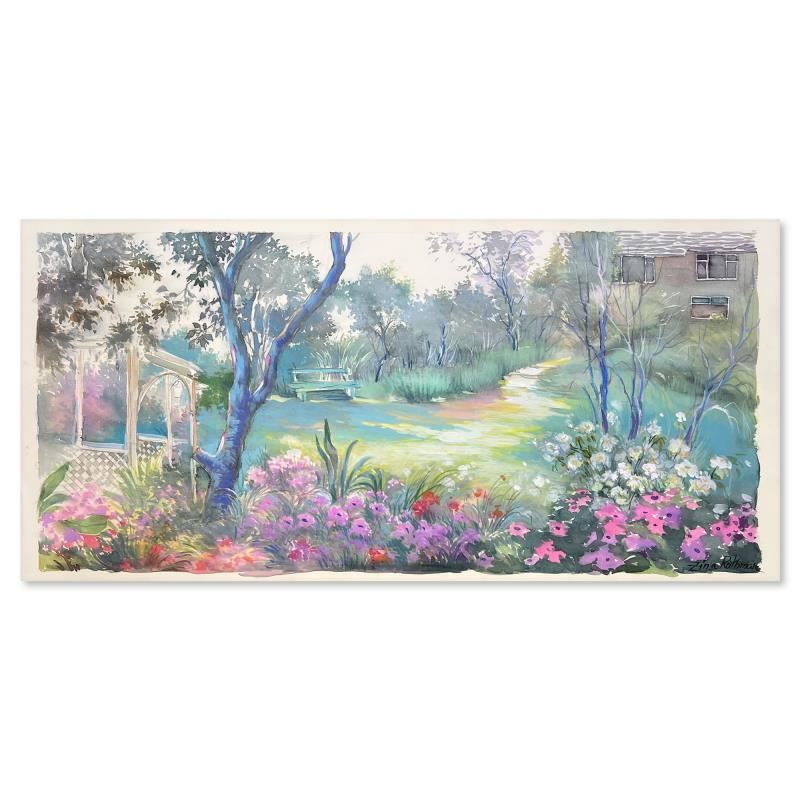 This is an untitled original painting on paper by Zina Roitman. The piece is hand signed and comes with a letter of authenticity. Measures approximately 15" x 31".