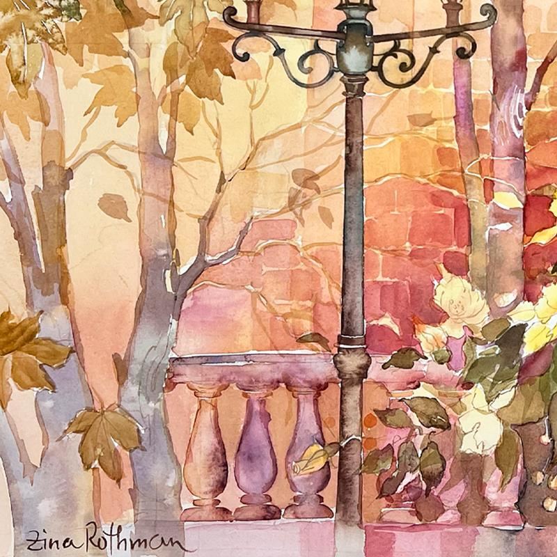 This is an untitled original painting on paper by Zina Roitman. The piece is hand signed and comes with a letter of authenticity. Measures approximately 23.5" x 29.5".
