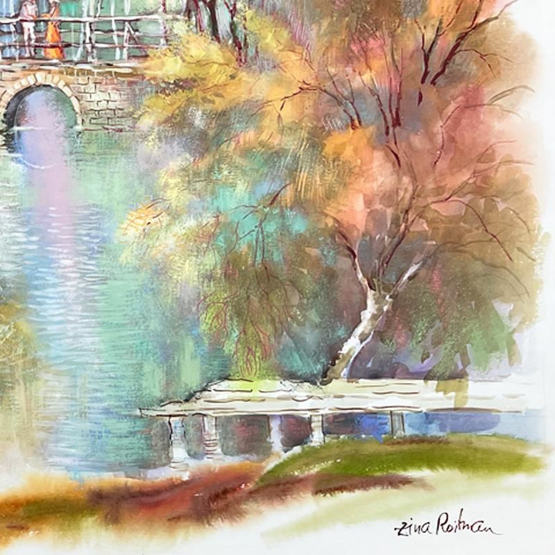 This is an untitled original painting on paper by Zina Roitman. The piece is hand signed and comes with a letter of authenticity. Measures approximately 27" x 40.5".