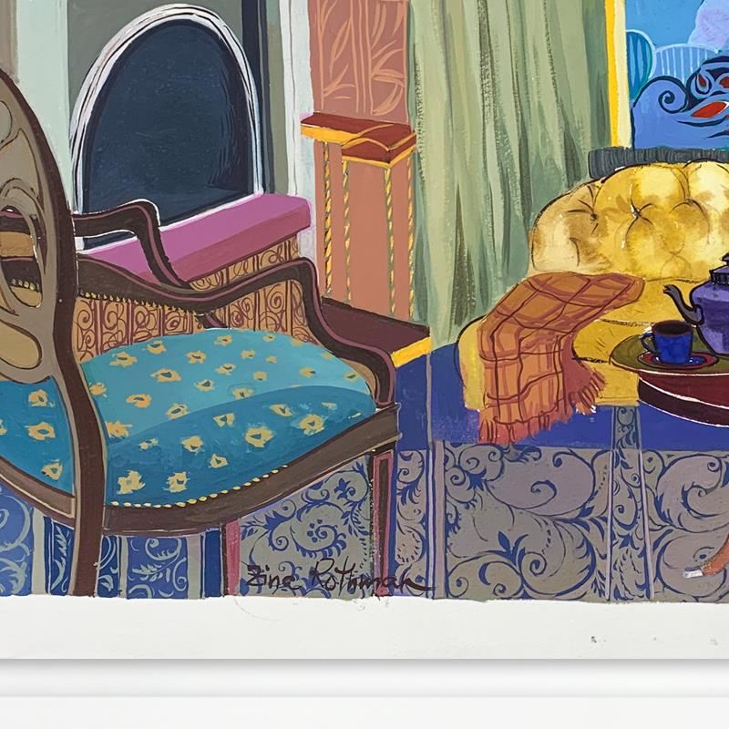 This is an untitled original painting on paper by Zina Roitman. The piece is hand signed, framed, and comes with a letter of authenticity. Measures approximately 26.5" x 34" (frame), 22.5" x 30" (sheet). This item requires special handling and may have a longer than usual turnaround.