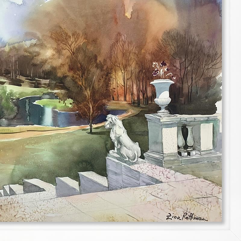 This is an untitled original painting on paper by Zina Roitman. The piece is hand signed, framed, and comes with a letter of authenticity. Measures approximately 24.5" x 33.5" (frame), 20.5" x 29.5" (sheet). This item requires special handling and may have a longer than usual turnaround.