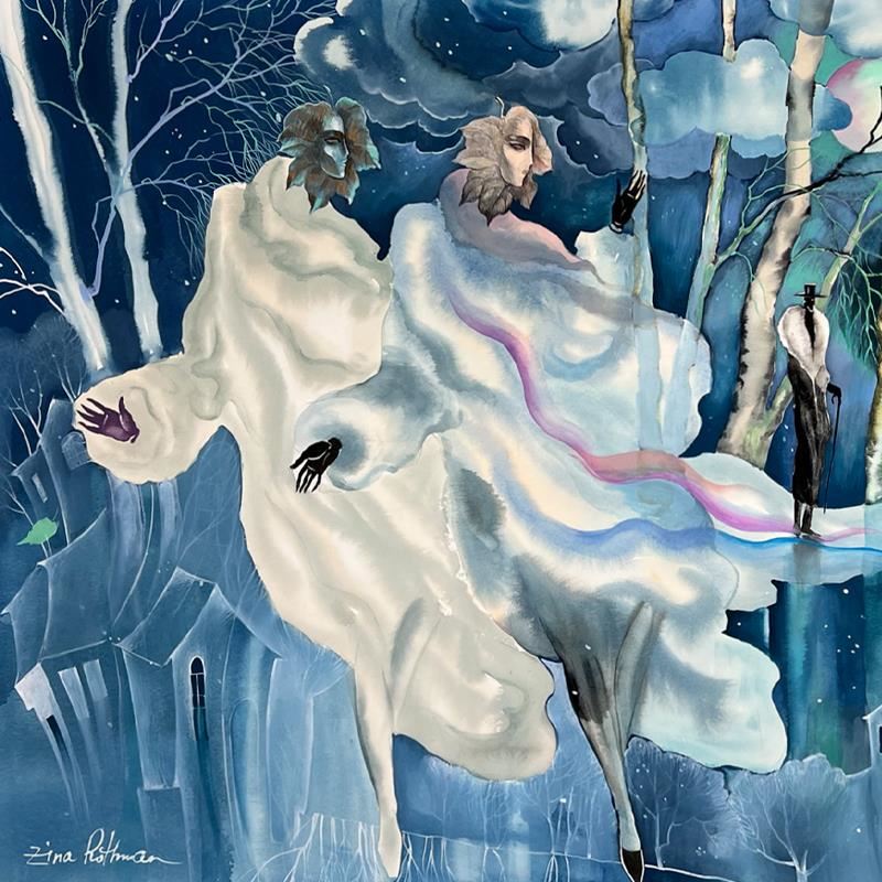 This is an untitled original painting on paper by Zina Roitman. The piece is hand signed and comes with a letter of authenticity. Measures approximately 27" x 37.5".