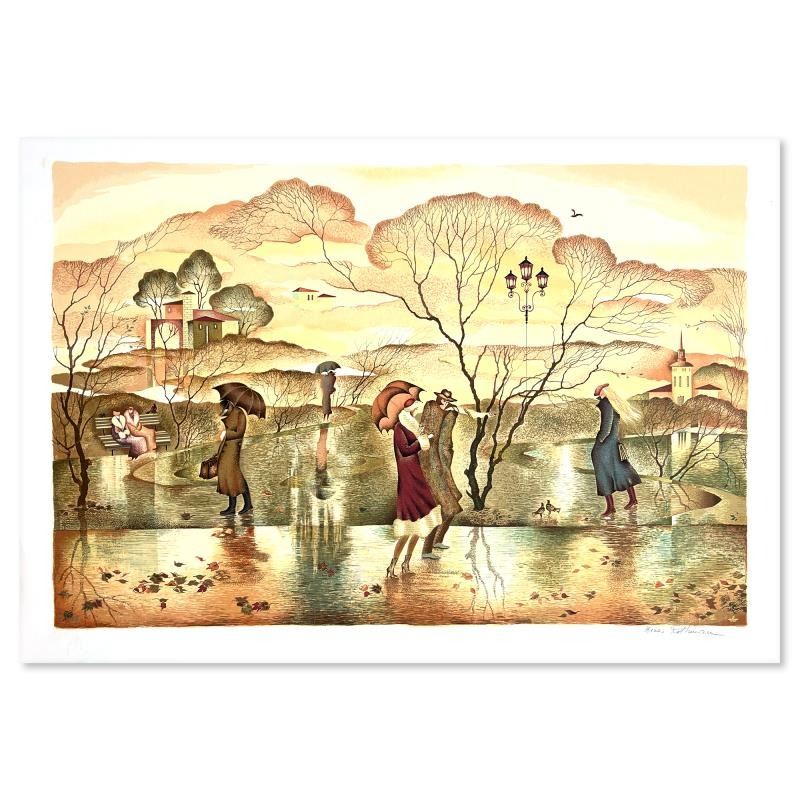 This is a limited edition serigraph on paper by Zina Roitman. The piece comes hand signed by the artist numbered and with a letter of authenticity. Measures approximately 17.5" x 26".