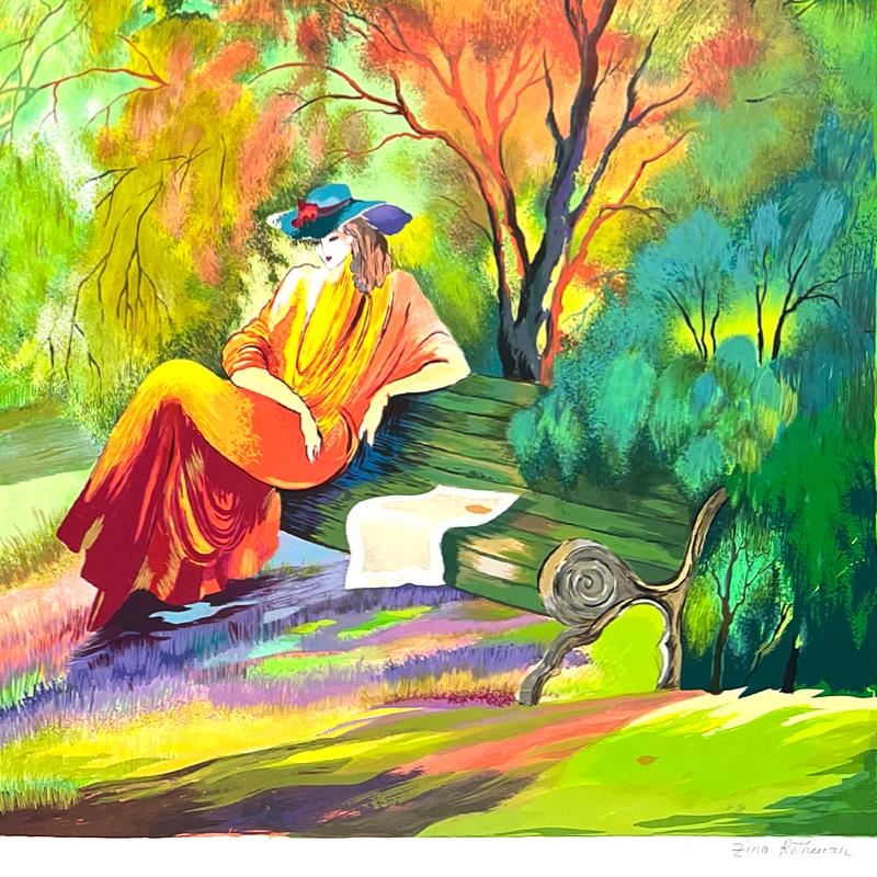 This is a limited edition serigraph on paper by Zina Roitman. The piece comes hand signed by the artist numbered and with a letter of authenticity. Measures approximately 25" x 38".