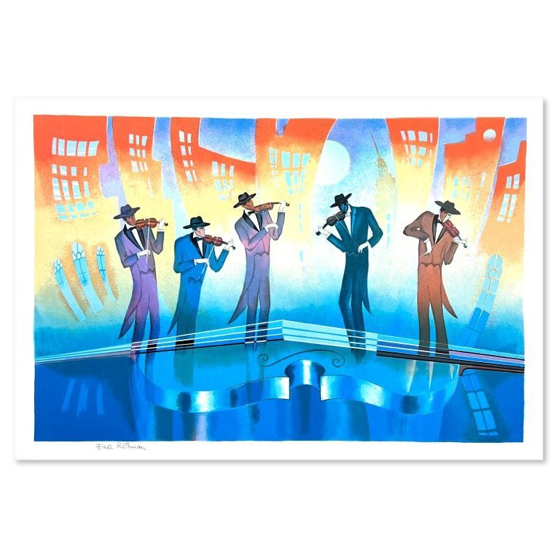 This is a limited edition serigraph on paper by Zina Roitman. The piece comes hand signed by the artist, numbered, and with a letter of authenticity. Measures approximately 17" x 25.5".