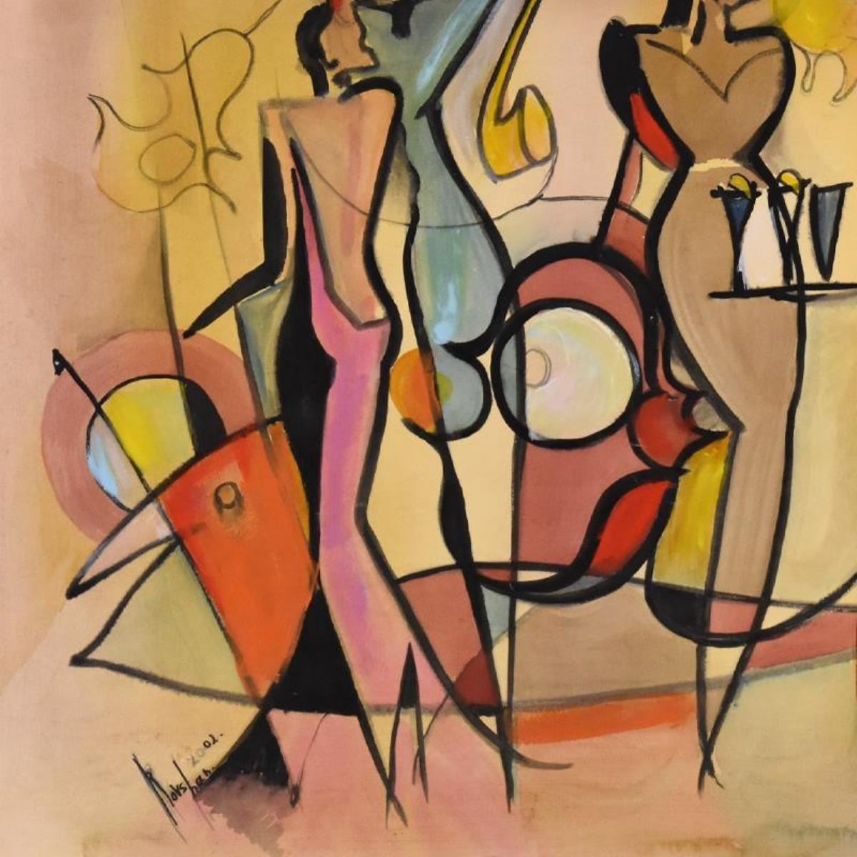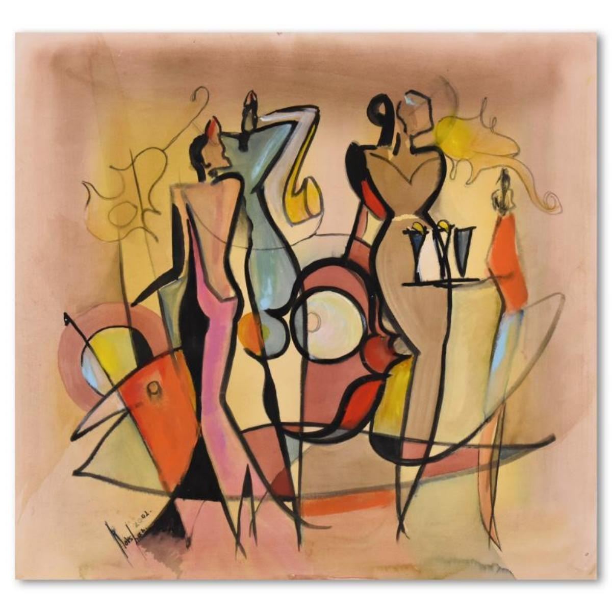 This is an original acrylic and watercolor painting on paper by Roshvan, hand signed by the artist. Includes Letter of Authenticity. Measure approx. 23.5" x 22" (image). Please note: the bottom-right corner is bent; this may be concealed when the piece is