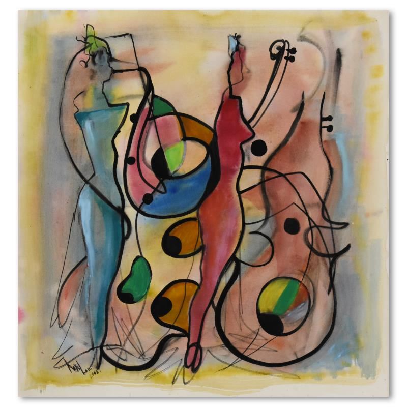 This is an original acrylic and watercolor painting on paper by Roshvan, hand signed by the artist. Includes Letter of Authenticity. Measure approx. 22" x 23" (image).
