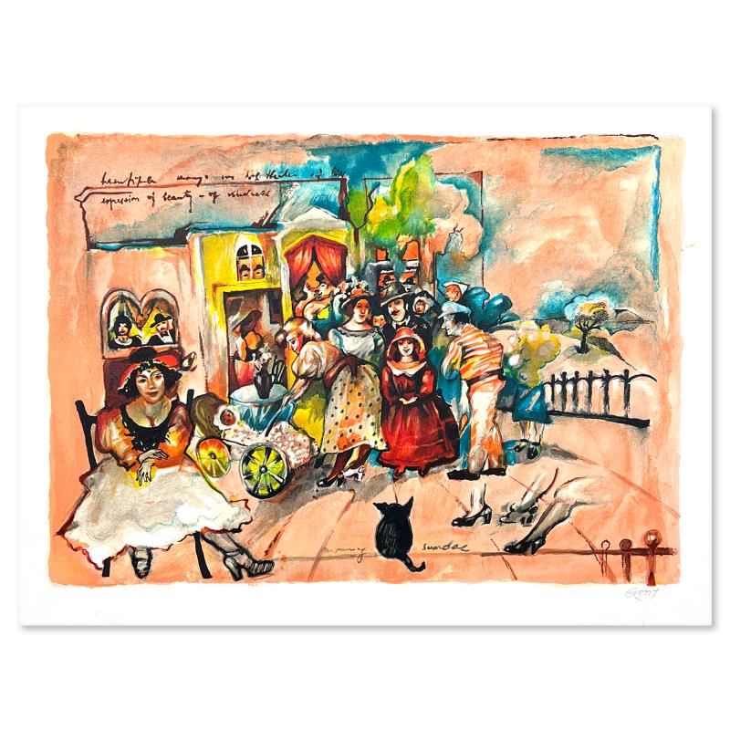 This is a limited edition on paper by Gretty Rubinstein. The piece comes hand signed by the artist, numbered, and with a letter of authenticity. Measures approximately 12" x 17.5".