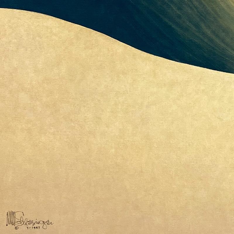 This is an original oil painting on canvas by William Schlesinger (1915-2011), dated 1987 and hand signed by the artist. This piece comes framed in a box frame; due to the age of the piece there is minor wear on the corners and edges of the frame. Includes Letter of Authenticity. Measures approx. 36" x 36" (frame), 35.5" x 35.5" (image).